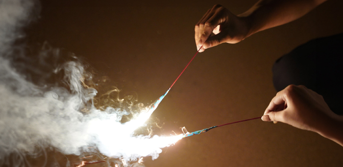 火の粉により服などに穴が開く可能性があるためご注意ください。