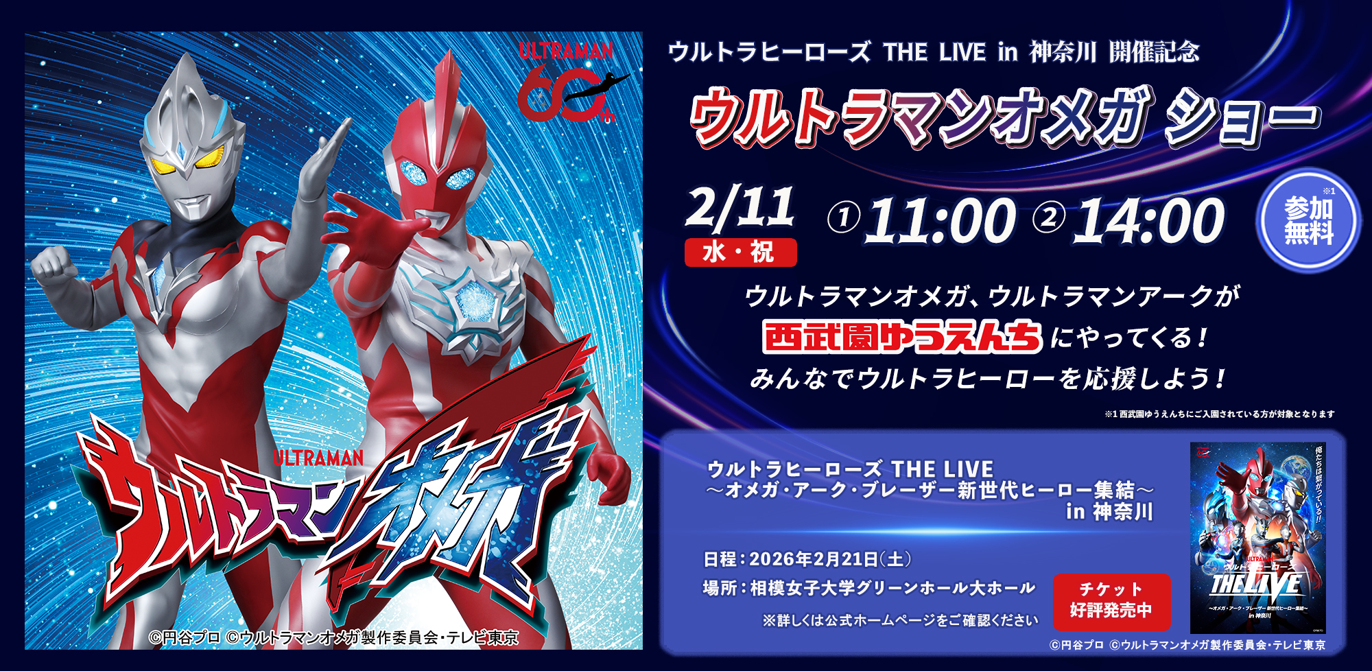 ウルトラマンオメガ、ウルトラマンアークが西武園ゆうえんちにやってくる!