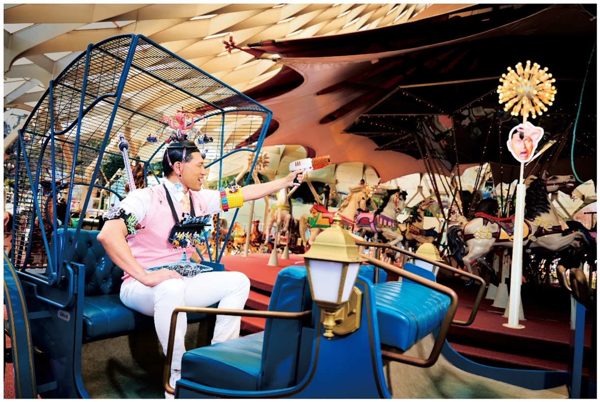 園内各所に春日さんの顔の的を用意、その数なんと30個。赤外線銃で的を狙い得点を競います。見事的に当てる事ができると、連携したスマートフォンからは「トゥース!」と春日さんおなじみのギャグが炸裂し点数が入ります!アトラクションに乗りながら撃つ!動いているアトラクションを撃つ!!新しい体験型アトラクションです。