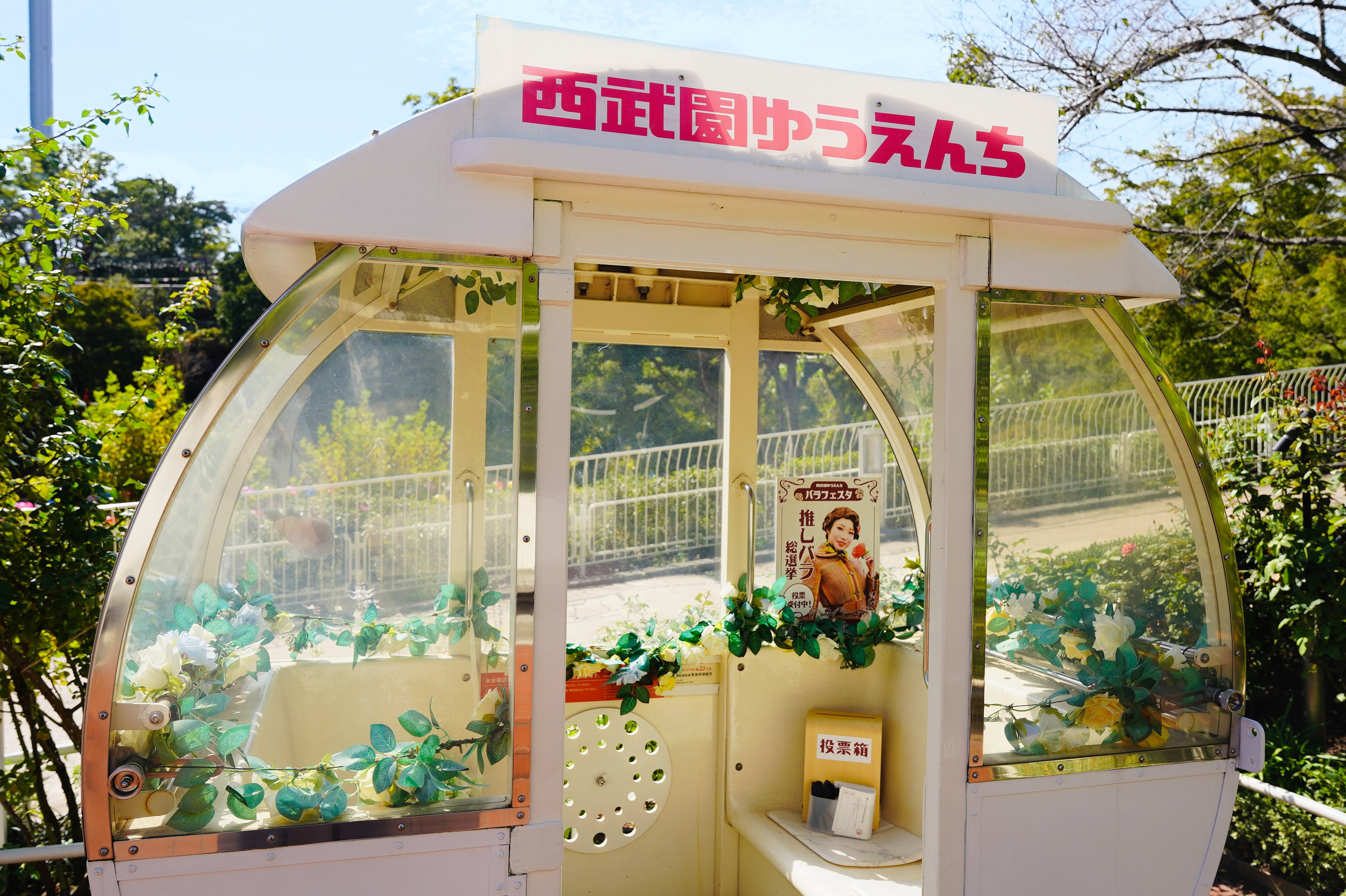 推しのバラを見つけたら、バラエンにある「思い出の大観覧車ゴンドラベンチ」内に設置してある投票用紙に記入して投票箱へ投函いただきます。