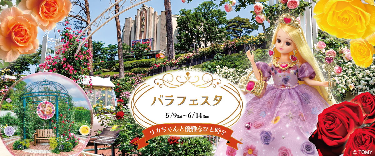 リカちゃんと一緒に春のバラを楽しんでいる気分になれるスポットを各所ご用意。春バラの魅力を存分にお楽しみください。