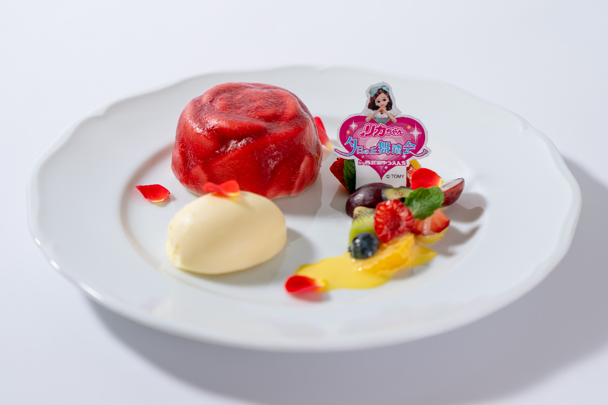 リカちゃんの好きな「赤いバラ」のチーズムースを メインに、彩りを加えたデザートプレートです。